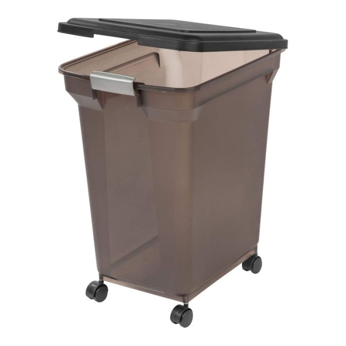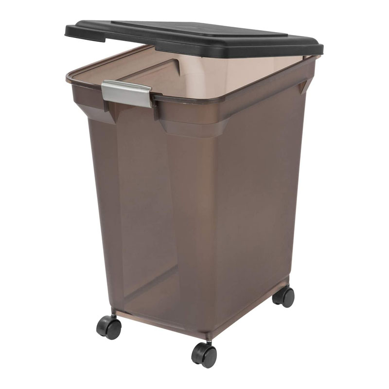The airtight sealed storage container locks in freshness and keeps moisture, humidity, and pests out. This rolling container can be also used as a charcoal container or wood chip storage.